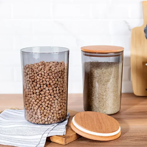 بانکه‌های شیشه‌ای از محبوب‌ترین انتخاب‌ها برای ذخیره‌سازی مواد غذایی در آشپزخانه هستند. این نوع بانکه‌ها به دلیل شفاف بودن، به شما این امکان را می‌دهند که محتویات داخل آن‌ها را به آسانی مشاهده کنید و از وضعیت مواد آگاهی پیدا کنید. شیشه به عنوان یک ماده غیر واکنشی با مواد غذایی، گزینه‌ای عالی برای نگهداری خشکبار، ادویه‌ها و حبوبات است. علاوه بر این، این مدل‌ها به طور معمول دارای درب‌های سیلیکونی و محکم هستند که از نفوذ هوا و رطوبت جلوگیری کرده و مواد را برای مدت طولانی تازه نگه می‌دارد.