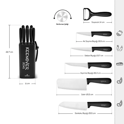 Karaca سرویس چاقو 10 پارچه کاراجا Keenover مشکی