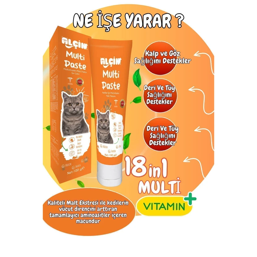 - خمیر چندویتامینه آلچین 100 گرم محصولی جامع برای تقویت سیستم ایمنی گربهها و پیشگیری از تشکیل گلولههای مویی است؛ فرمولی مغذی که سلامت روزانه را حمایت میکند.