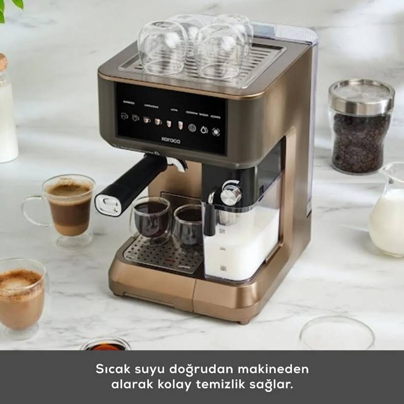 Karaca MyCaffe Barista S10 Entegre Süt Hazneli, Otomatik Espresso, Latte ve Cappuccino Makinesi Walnut Brown