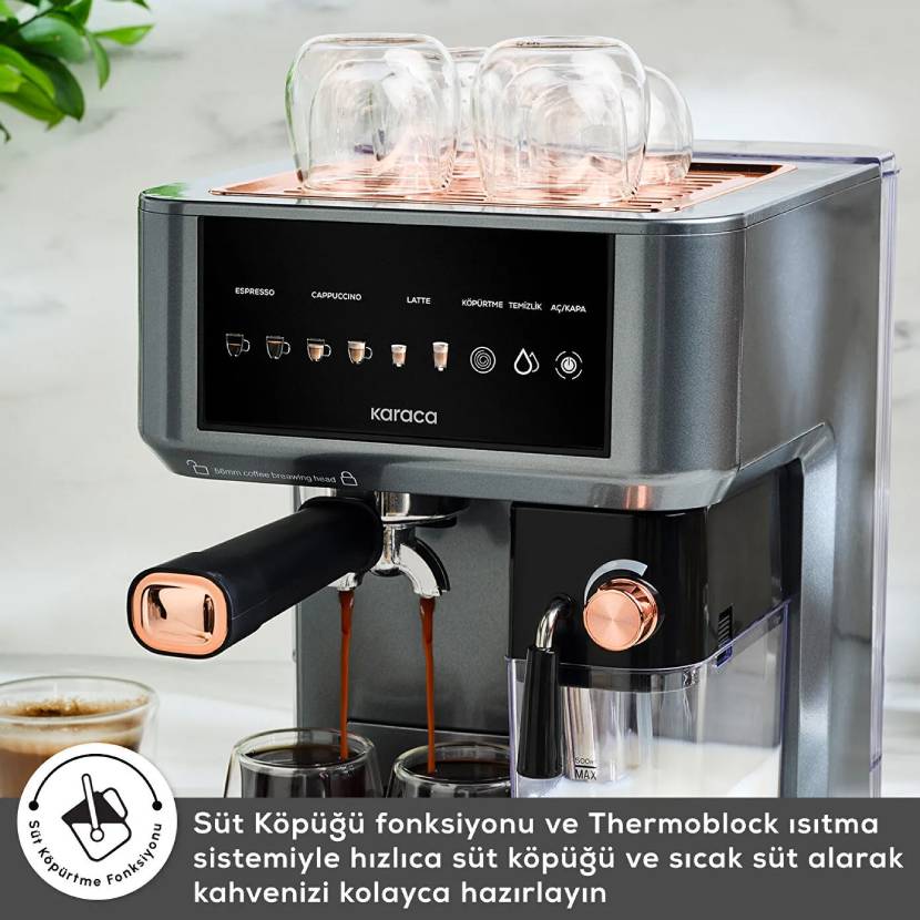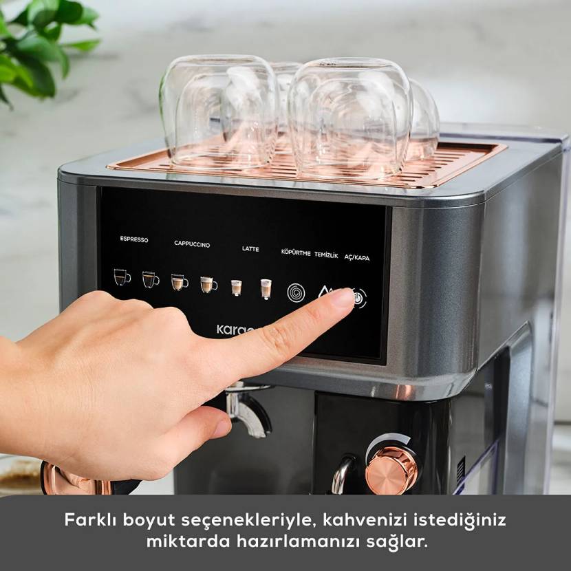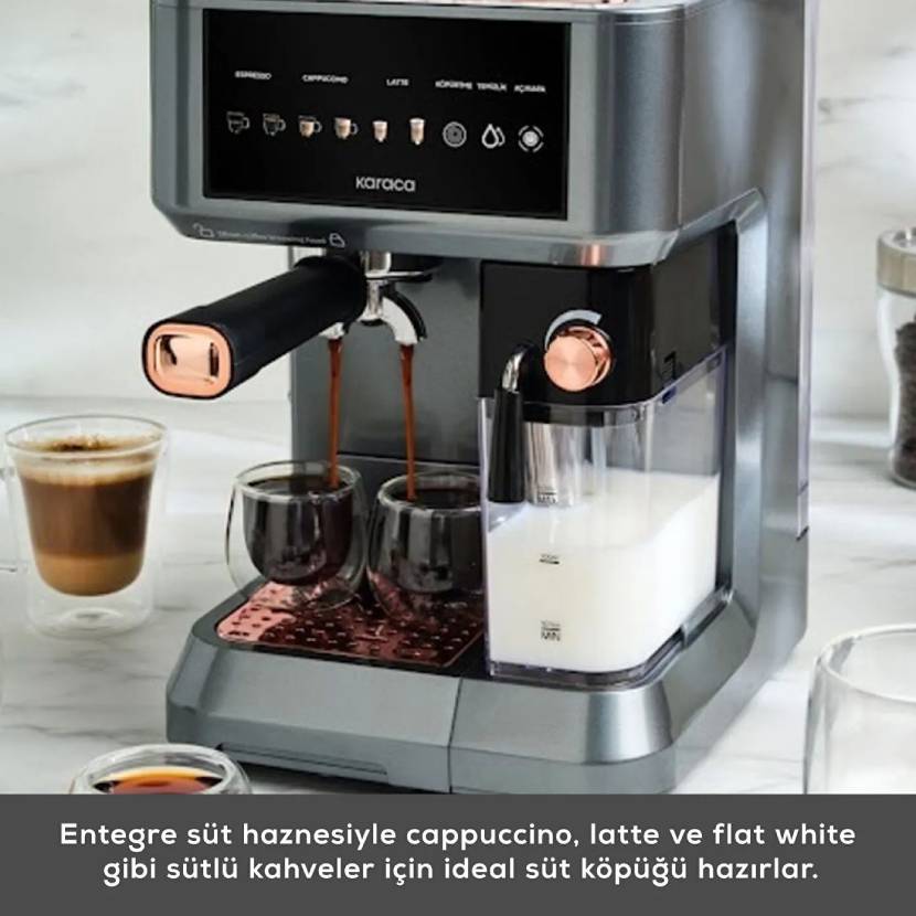 Karaca MyCaffe Barista S10 Entegre Süt Hazneli, Otomatik Espresso, Latte ve Cappuccino Makinesi Copper