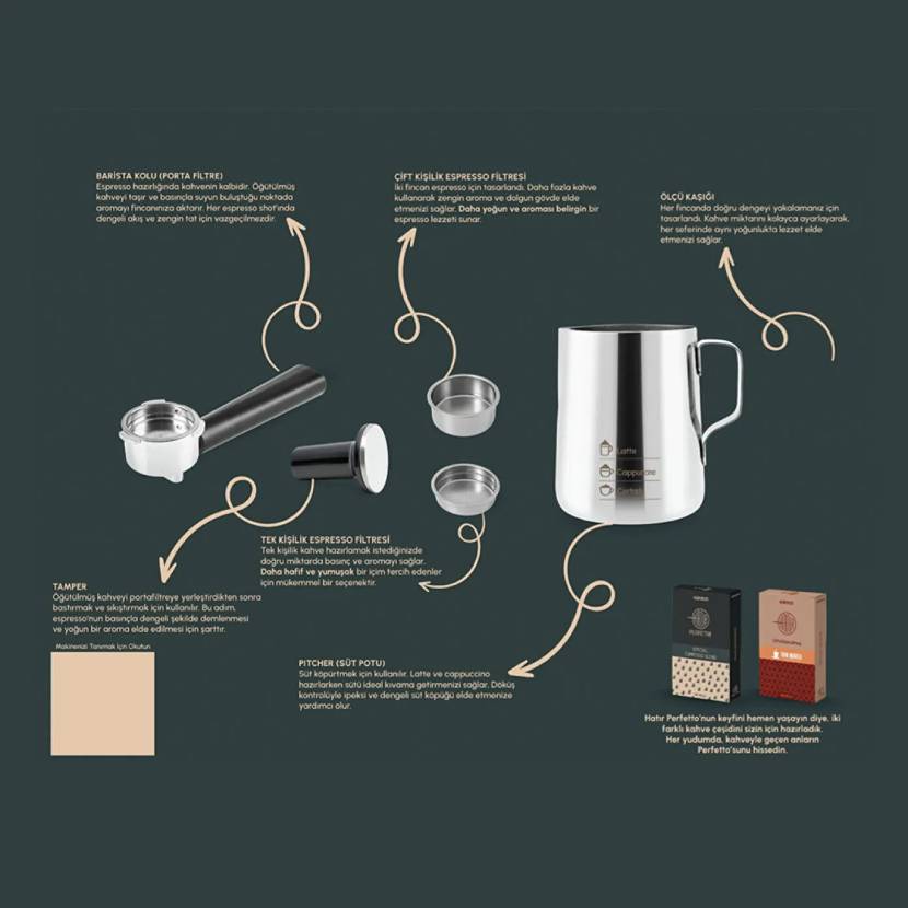 دستگاه اسپرسو ساز Hatır Perfetto شما دارای توان 1900 وات است، بنابراین دستگاه شما در مدت زمان کوتاهی آماده تهیه قهوه خواهد بود.