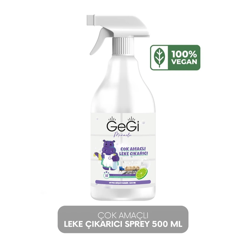 • اسپری لکه‌بر چندمنظوره گیگی ۵۰۰ میلی‌لیتری، مایع قدرتمند برای حذف لکه‌های سخت از پارچه، فرش و سطوح خانگی. کاربری آسان، اثر سریع و مناسب استفاده روزمره. قبل از مصرف روی نقطه‌ای نامرئی تست کنید.