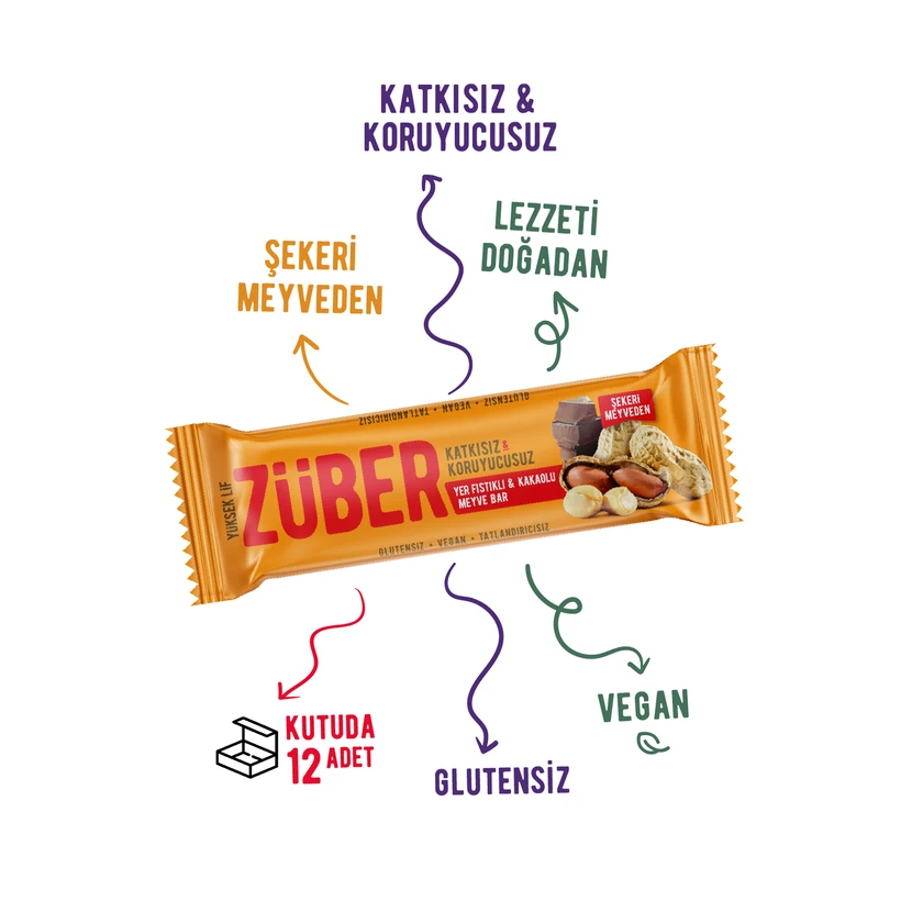 - بار میوهای زوبر با طعم بادامزمینی و کاکائو، میانوعدهای خوشمزه و مغذی برای روزهای پرمشغله است. بسته ۱۲ عددی ۴۰ گرمی، همراهی مناسب خانه، کار و باشگاه.