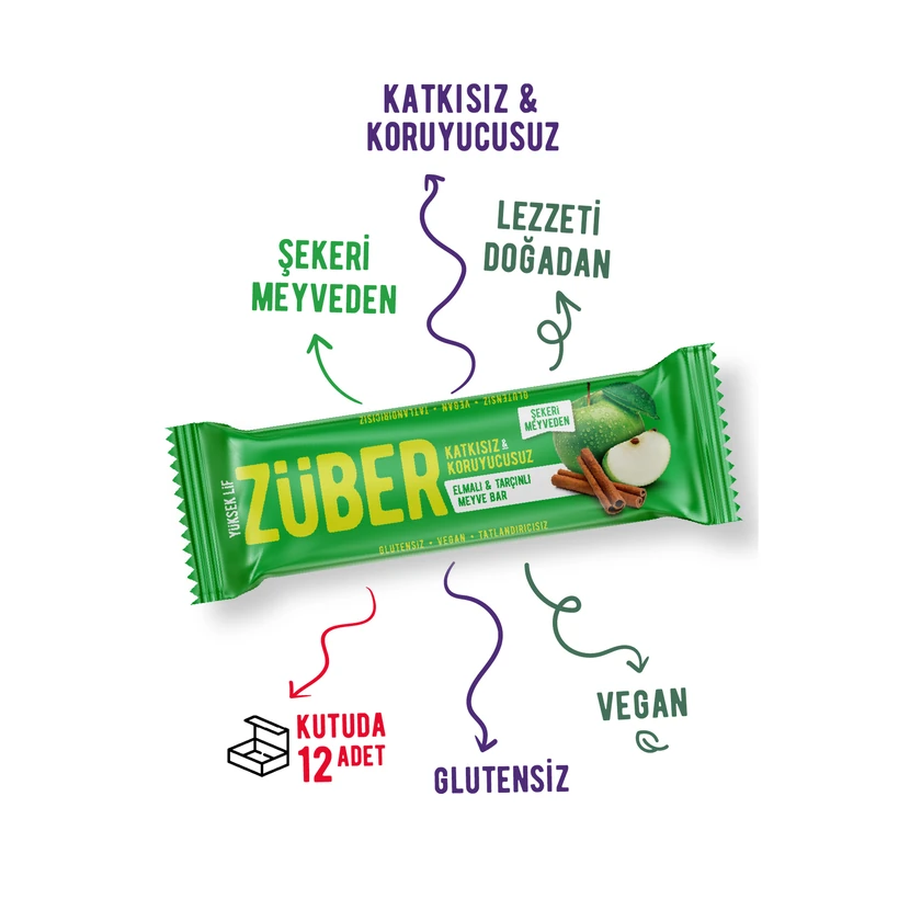 - بار میوهای زوبر با طعم سیب و دارچین، میانوعدهای خوشطعم و دلنشین است که عطر گرم دارچین را با تازگی سیب ترکیب میکند. هر بار با وزن ۴۰ گرم تهیه شده و بسته ۱۲ عددی آن انتخابی مناسب برای مصرف روزانه در خانه، محل کار و مدرسه است.