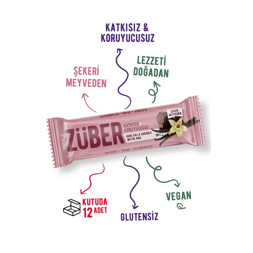 بار میوه‌ای وانیلی و کاکائویی زوبر بسته ۱۲ عددی ۴۰ گرمی
