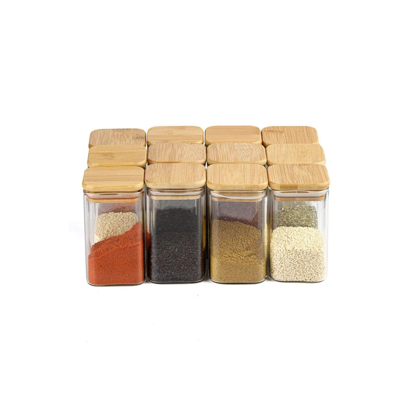 - بانکه شیشهای مربعی 300 میلیلیتری با درب بامبو از برند کارچیچهگی هوم؛ مناسب نگهداری مواد خشک، ادویه و کنسرو خانگی. شیشه شفاف و مقاوم، درب بامبو ضد رطوبت، طراحی شیک و کارآمد برای آشپزخانه و هدیه.