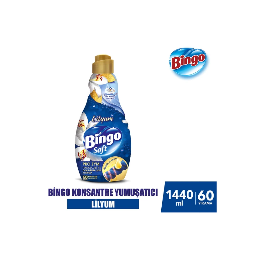 • نرم‌کننده لباس بینگو لیلیوم 1.44 لیتر (بسته 4 عددی)، کنسانتره و با عطر خوشایند؛ پارچه‌ها را نرم، خوش‌بو و بدون الکتریسیته نگه می‌دارد. مناسب برای انواع پارچه، استفاده مطابق دستور مصرف توصیه می‌شود.