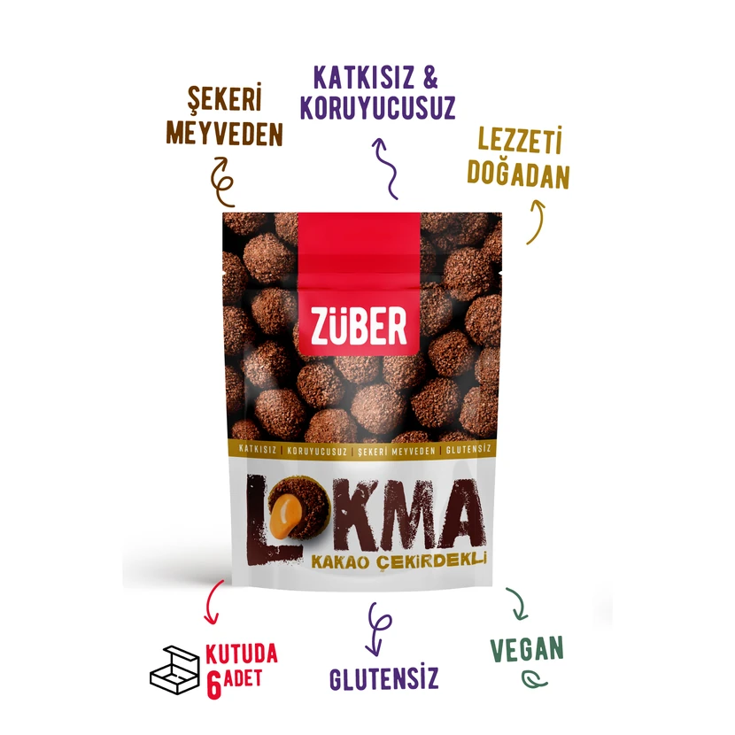 - توپهای میوهای زوبر با روکش دانه کاکائو و کرم فندق، طعمی دلنشین و بافتی متعادل دارند و برای میانوعده روزانه گزینهای خوشمزه و رضایتبخش هستند.