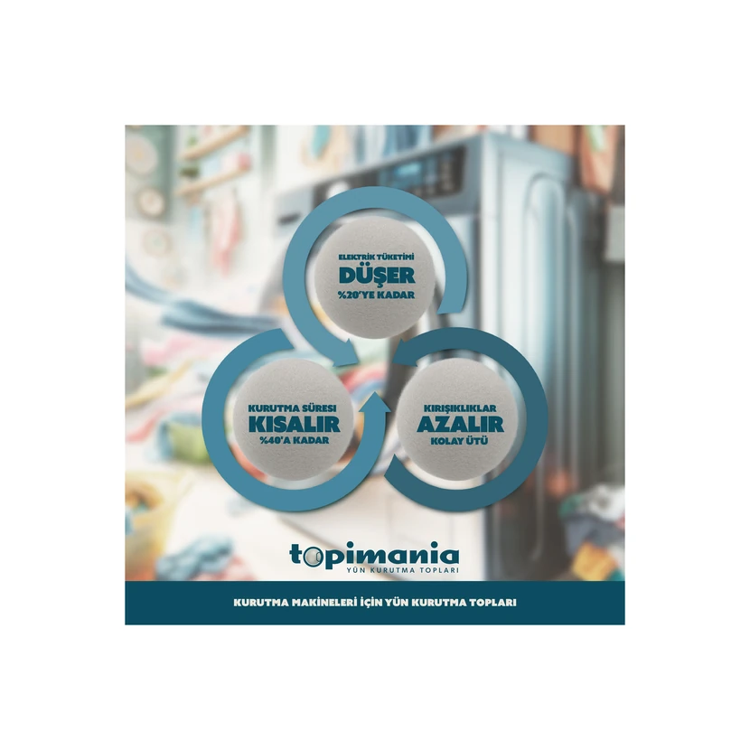 • توپ پشمی خشک‌کن لباس تاپیمانیا، بسته سه‌تایی سایز خیلی بزرگ، از پشم طبیعی تولید داخلی؛ مناسب برای کاهش چروک و کوتاه‌تر کردن زمان خشک کردن لباس‌ها.