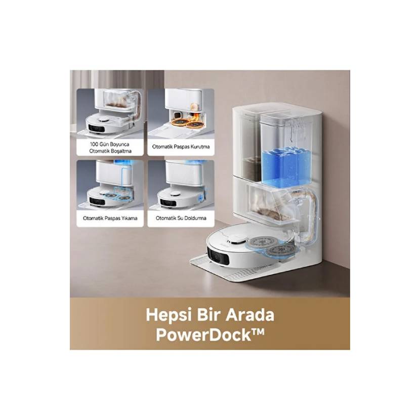این مدل مجهز به سیستم شستوشوی خودکار، تخلیه خودکار گردوغبار و خشککن حرارتی پدها است تا نظافت خانه شما بدون نیاز به دخالت دستی انجام شود. طراحی آن بهگونهای است که هنگام شستوشوی کف، پدها بهطور خودکار بالا میروند تا از خیس شدن فرش جلوگیری شود.