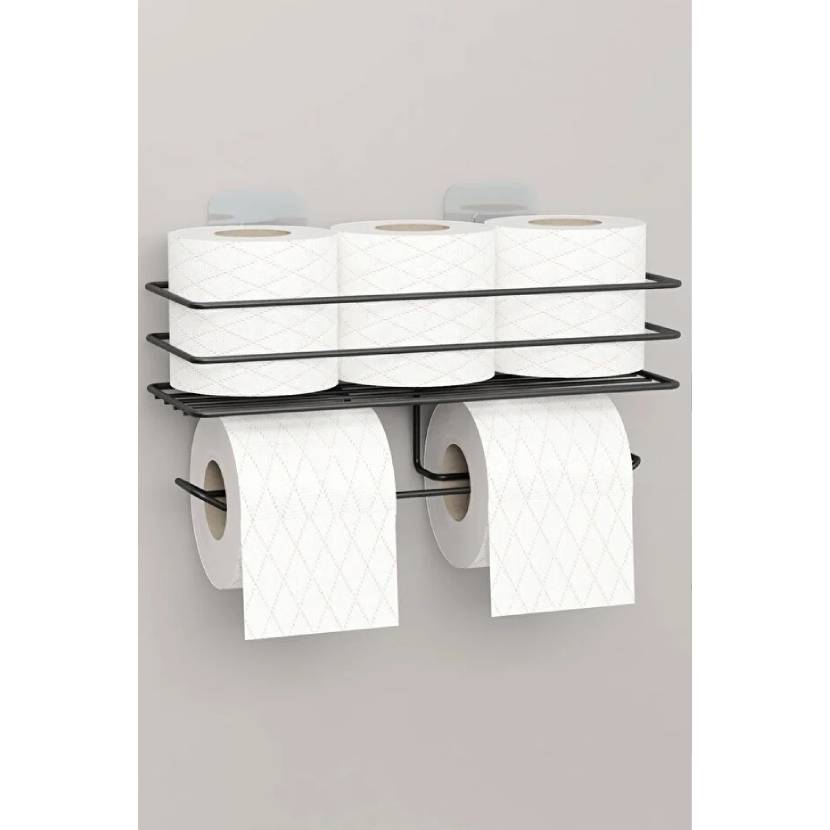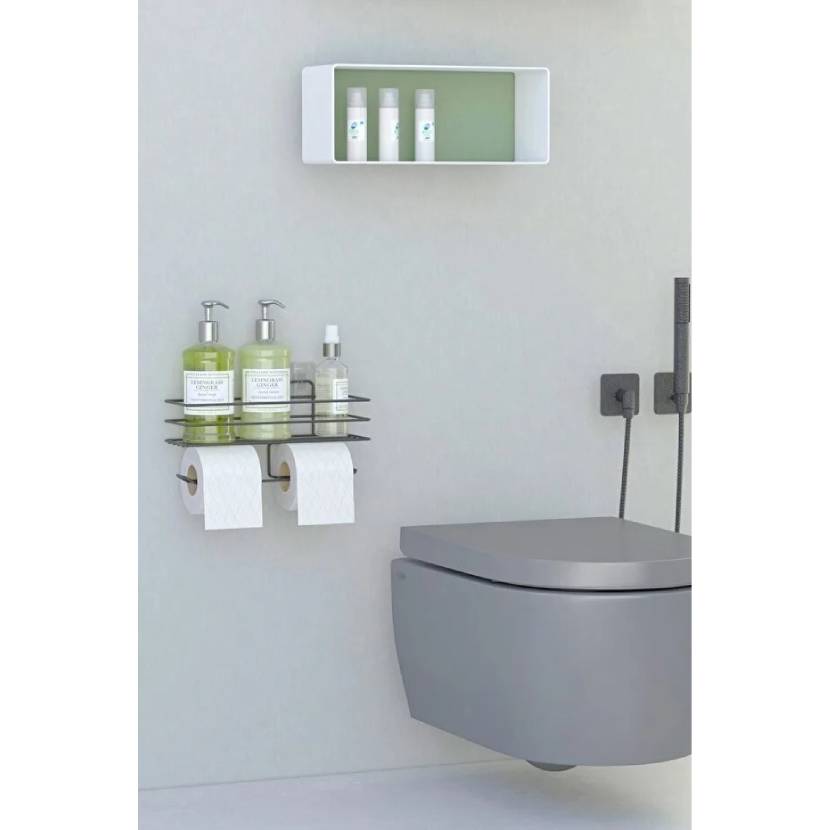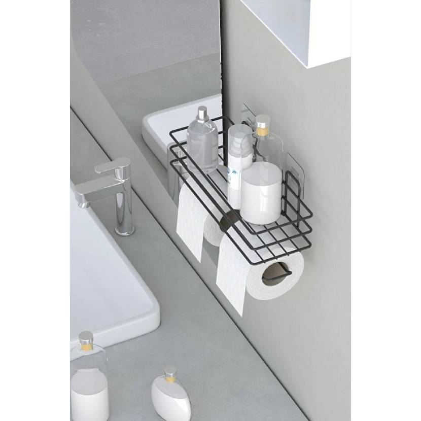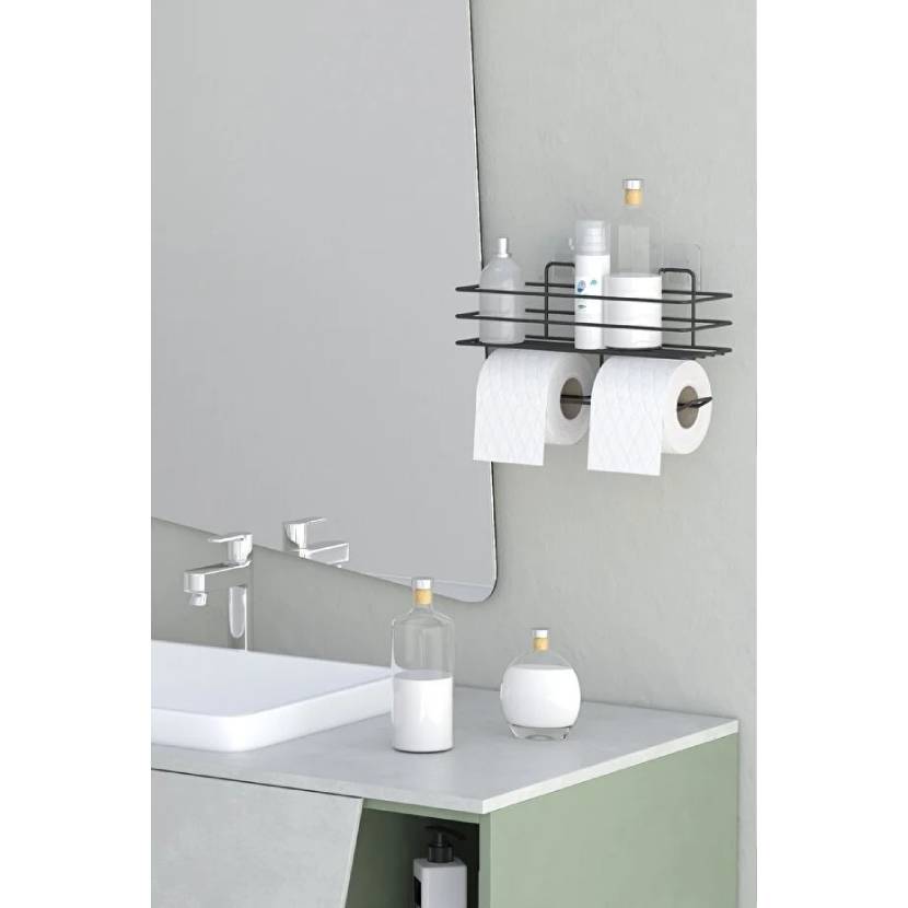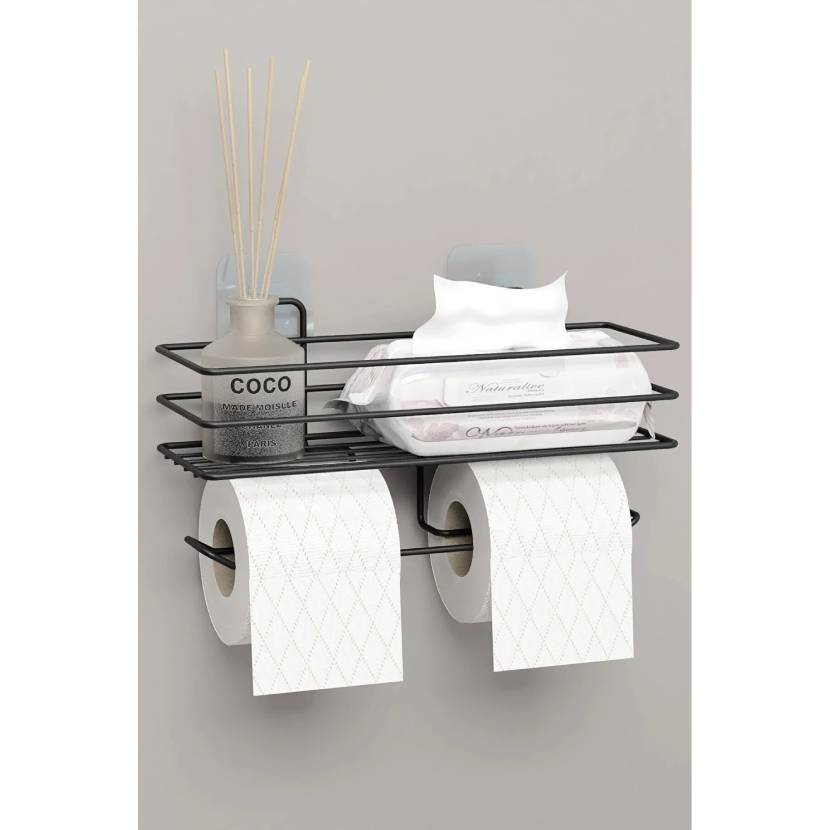 zabata Yapışkanlı Çiftli Tuvalet Kağıtlığı Tutacağı Askısı Mat Siyah Metal Tuvalet Kağıtlık