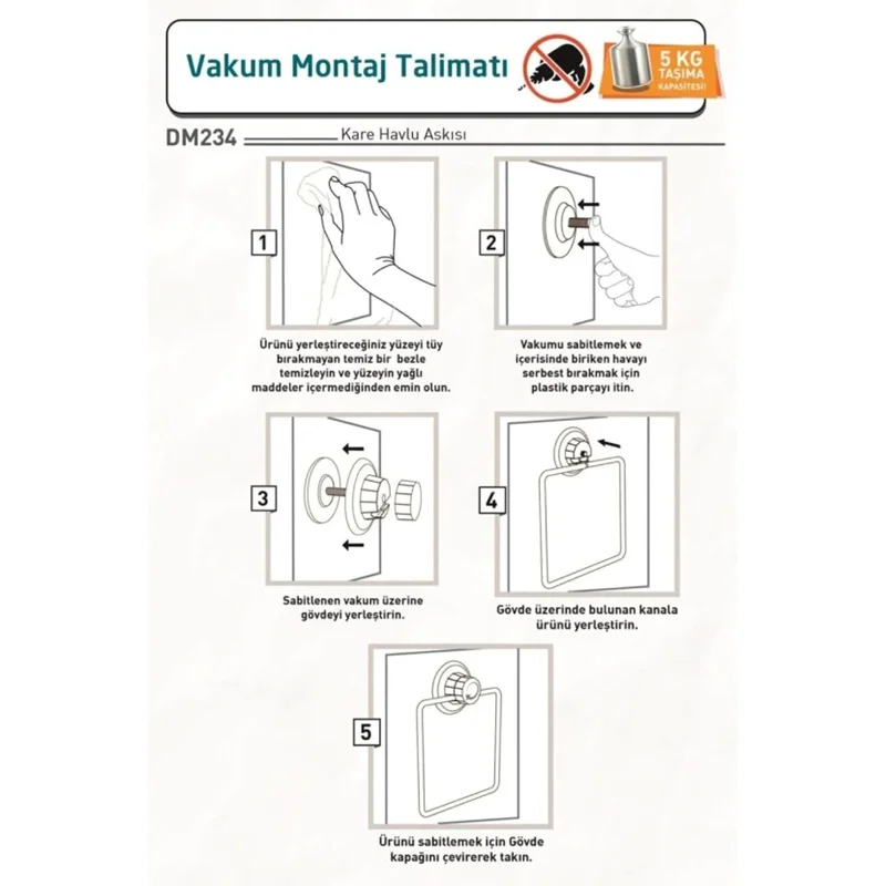 Teknotel DELME VİDA MATKAP YOK. VAKUMLU KARE HAVLULUK MAT SİYAH DM234