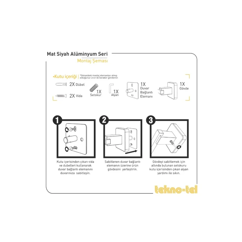 Teknotel ÖMÜR BOYU PASLANMAZ HAVLULUK MAT SİYAH MG335