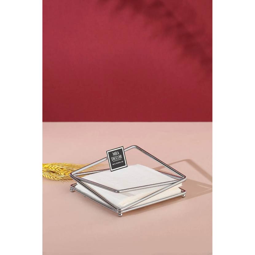 mba decor metal bending art Prizma Model Gümüş Paslanmaz Dolu Demir Peçetelik Sunum Mutfak Sofra 18x18