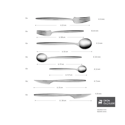 Karaca سرویس قاشق چنگال 84 پارچه 12 نفره کاراجا الگانس براگا نقره ای