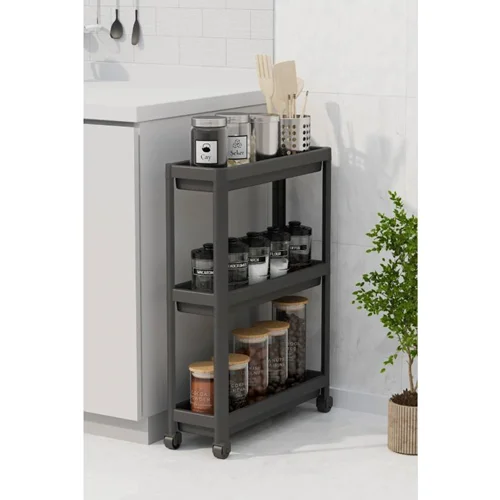 Omas شلف حمام 3 طبقه چرخ دار اوماش Om6603 مشکی