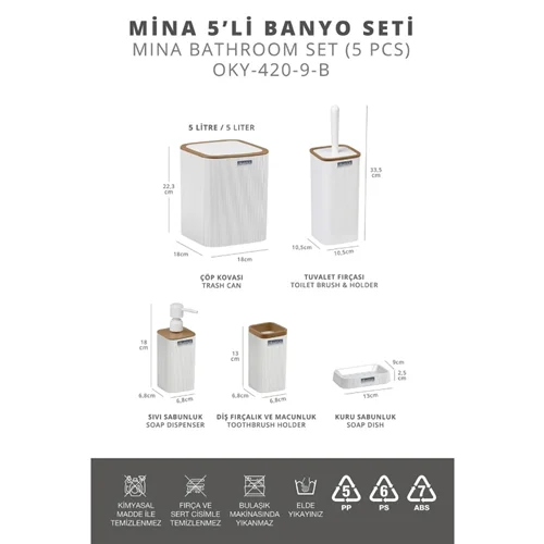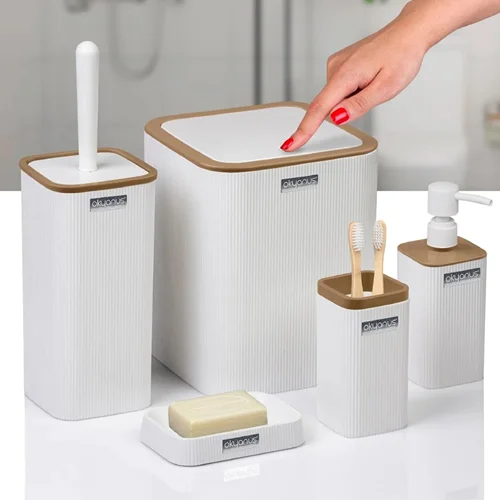 Okyanus Home ست سرویس بهداشتی 5 پارچه اقیانوس هوم سفید مربع چوب روشن