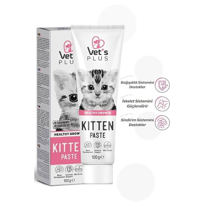 Vet's Plus Kitten Multivitamin Malt Macun 100gr (Yavru ve Anne Kediler İçin Multivitaminli Tüy Yumağı Önleyici)