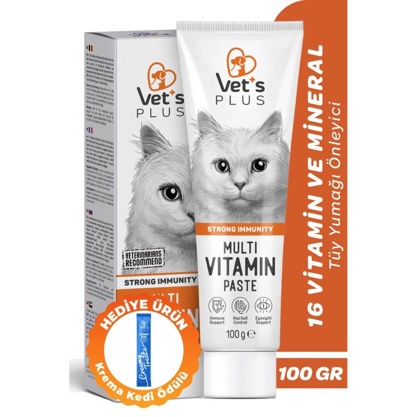 Vet's Plus Multivitamin Malt Macun 100gr (Tüy Yumağı Önleyici ve Multivitamin Desteği, Kediler için)