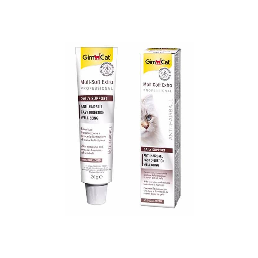 خمیر Gimcat Malt Soft Extra با ترکیب مالت طبیعی و فیبرهای ضروری، به پیشگیری و دفع گولههای مو (Hairball) در دستگاه گوارش گربهها کمک میکند. این محصول مخصوص گربههایی است که به دلیل لیسیدن مداوم بدن، موهای بلعیدهشده در معده و روده تجمع پیدا میکنند.