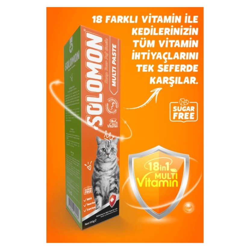 - خمیر مولتیویتامین مالتی سولومون 100 گرم مخصوص گربهها؛ ترکیبی از ویتامینها و مالت برای بهبود هضم و کمک به دفع موهای بلعیدهشده. کیفیت بالا، طعم مطلوب، مصرف آسان و مناسب برای استفاده روزانه. نکته خرید: طبق مقدار توصیهشده مصرف کنید.