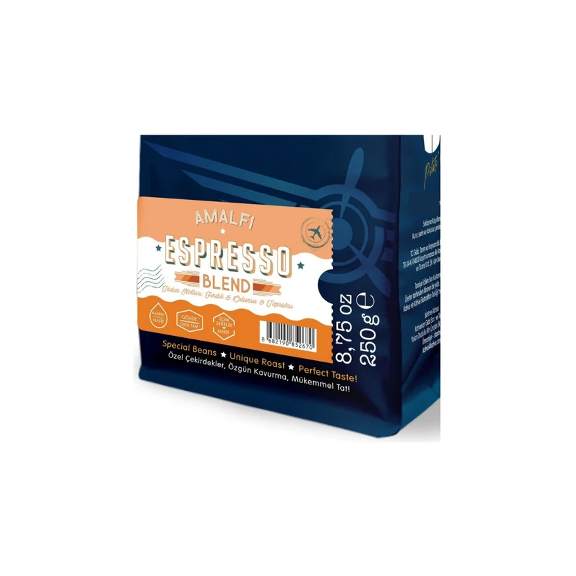 - قهوه دانهای آمالفی اسپرسو ۲۵۰ گرم ترکیبی مناسب برای تهیه اسپرسو با طعمی غنی، کرمی و عطر دلپذیر است؛ دانههای تازه بوداده کیفیت بالا و نتهای متعادل طعم را تضمین میکنند.