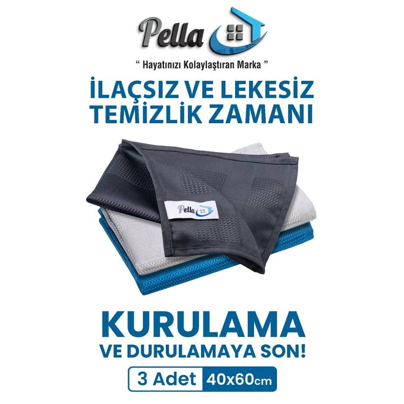 Pella İthal 3'lü Mikrofiber Temizlik Bezi, Cam, Araba, Mutfak, Fiber Bez (40 X 60 CM)