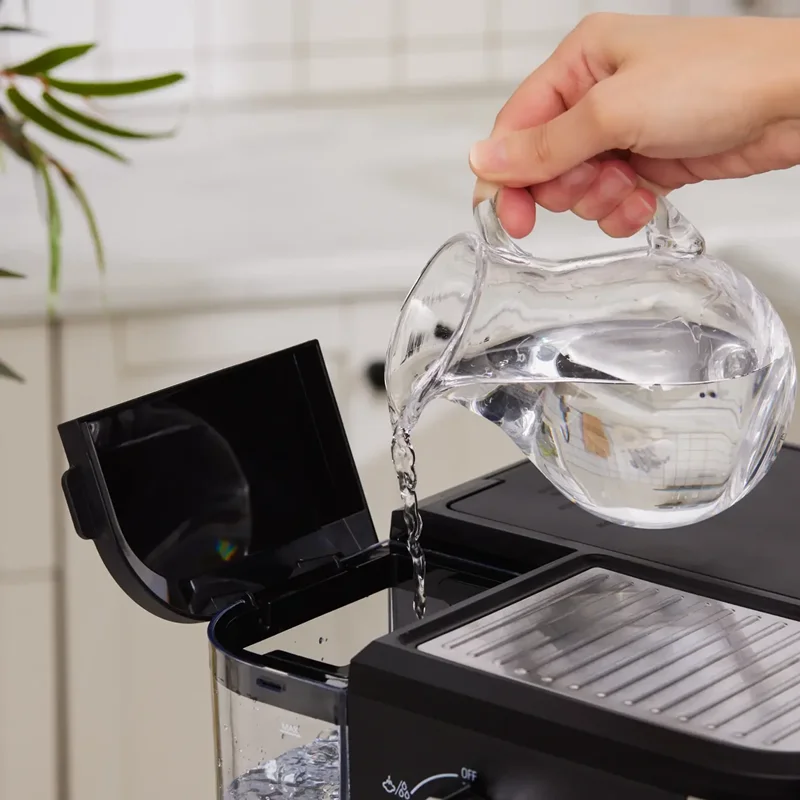 مخازن بزرگ آب: مخزن قهوه فیلتری 1.5 لیتری و مخزن آب اسپرسو 1 لیتری به شما امکان دم کردن قهوه را برای مدت طولانی می دهد. این امر نیاز به پر کردن مکرر آب را از بین می برد.
