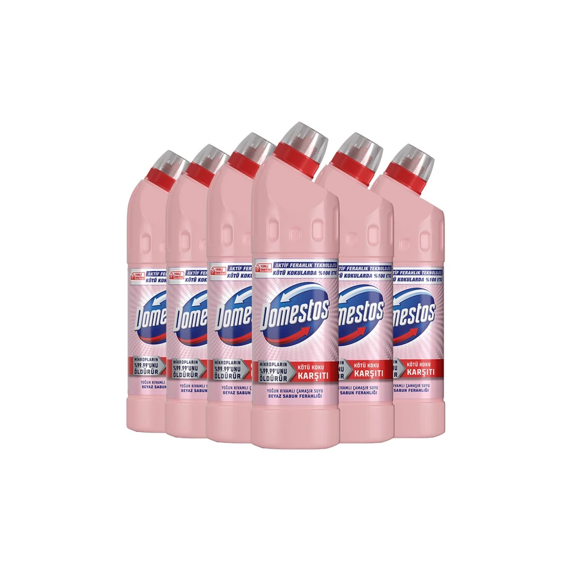 - مایع سفیدکننده دومستوس با رایحه صابون سفید، بسته ۶ عددی ۷۵۰ میلیلیتر؛ پاککنندگی قوی و ضدعفونیکننده مناسب برای سفیدکردن پارچهها و حفظ بهداشت منزل.