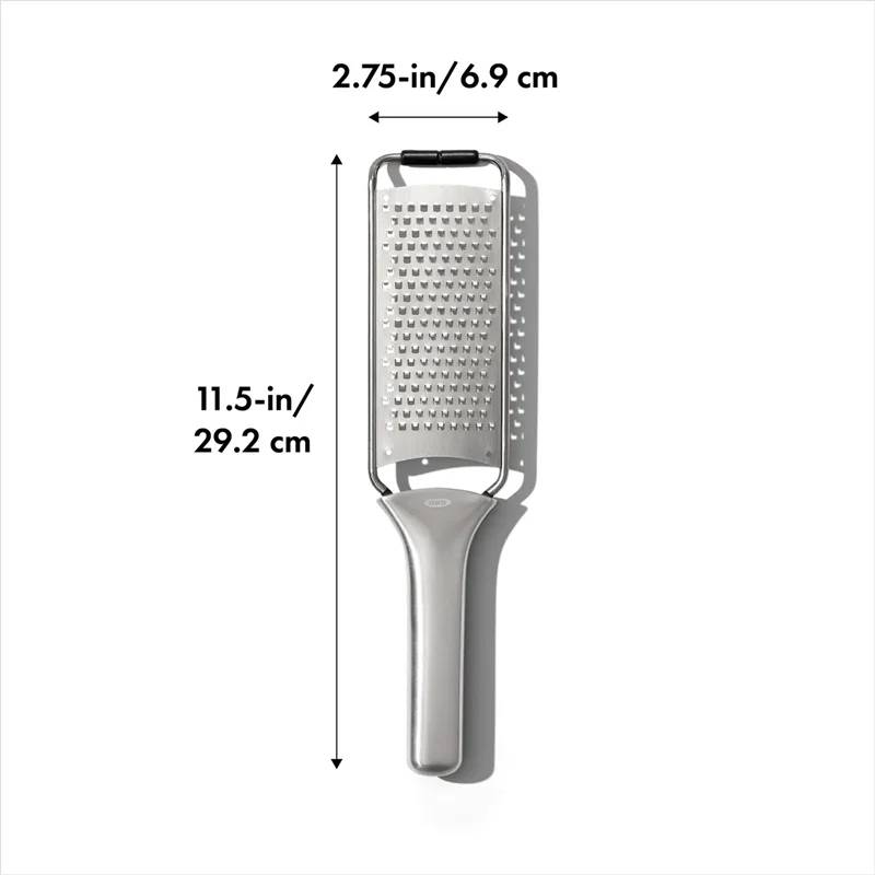 رنده OXO STEEL از سری OXO Steel به خوبی پنیر، سبزیجات، شکلات و موارد دیگر را با سطح رنده تیز و ضد زنگ خود رنده می کند.