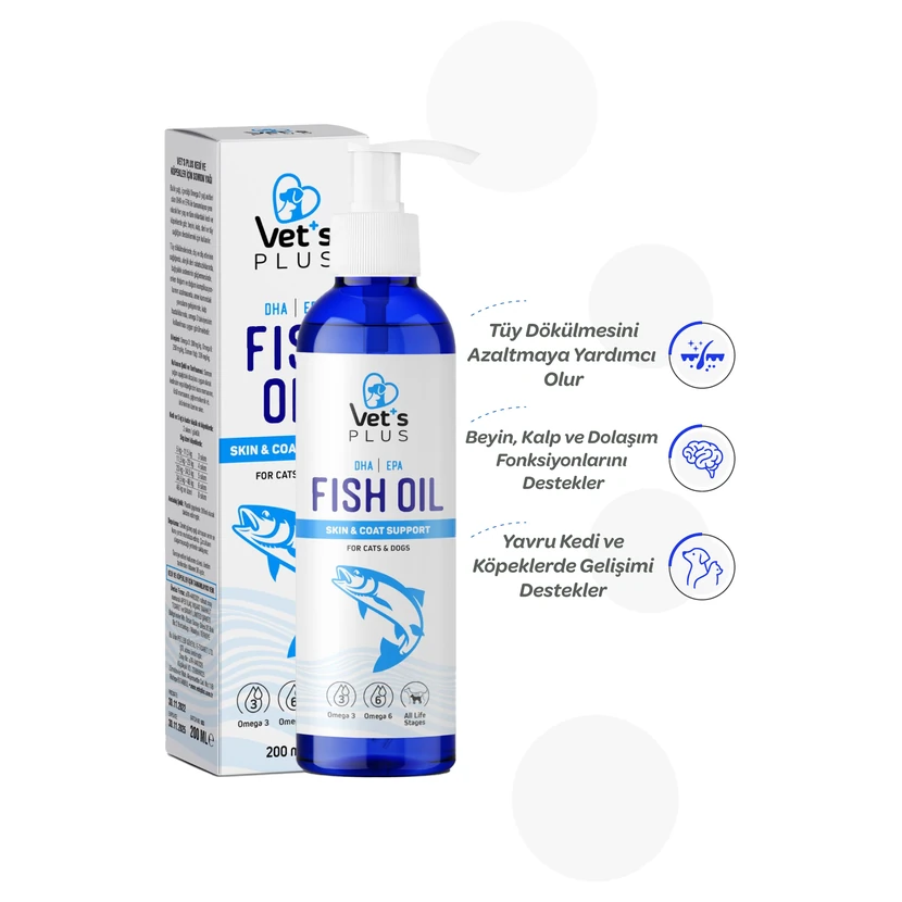 - روغن ماهی وتاس پلاس 200 میلیلیتر با امگا-3 و امگا-6 فرمولی غنی برای تقویت پوست و بهبود کیفیت خز سگها و گربهها ارائه میدهد.