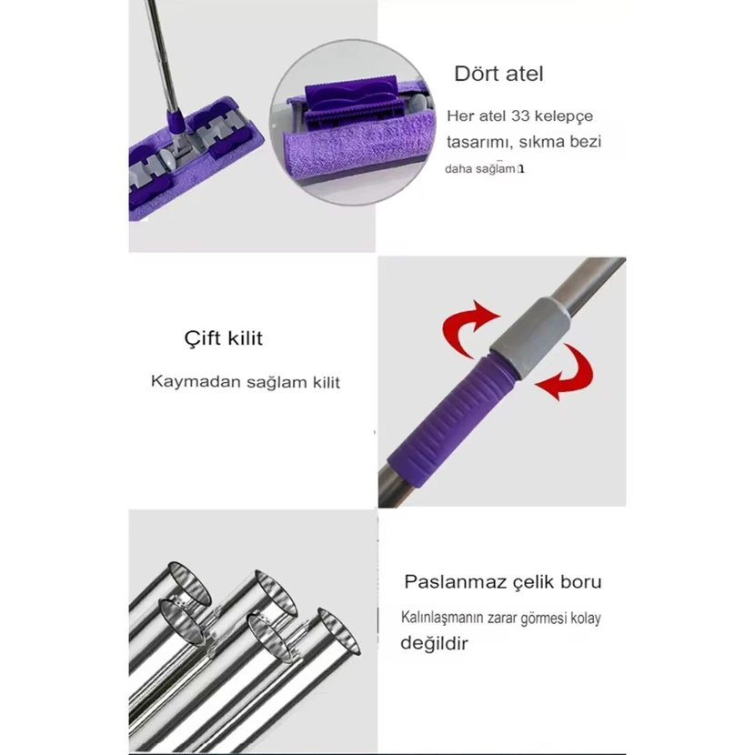 - الیاف میکروفایبر با قدرت جذب بالا و دوام مناسب، قابل شستشو و بدون ایجاد خطوخش؛ طراحی کارا برای گوشهها و سطوح ناهموار و تعویض آسان با دستمال یدک همراه.