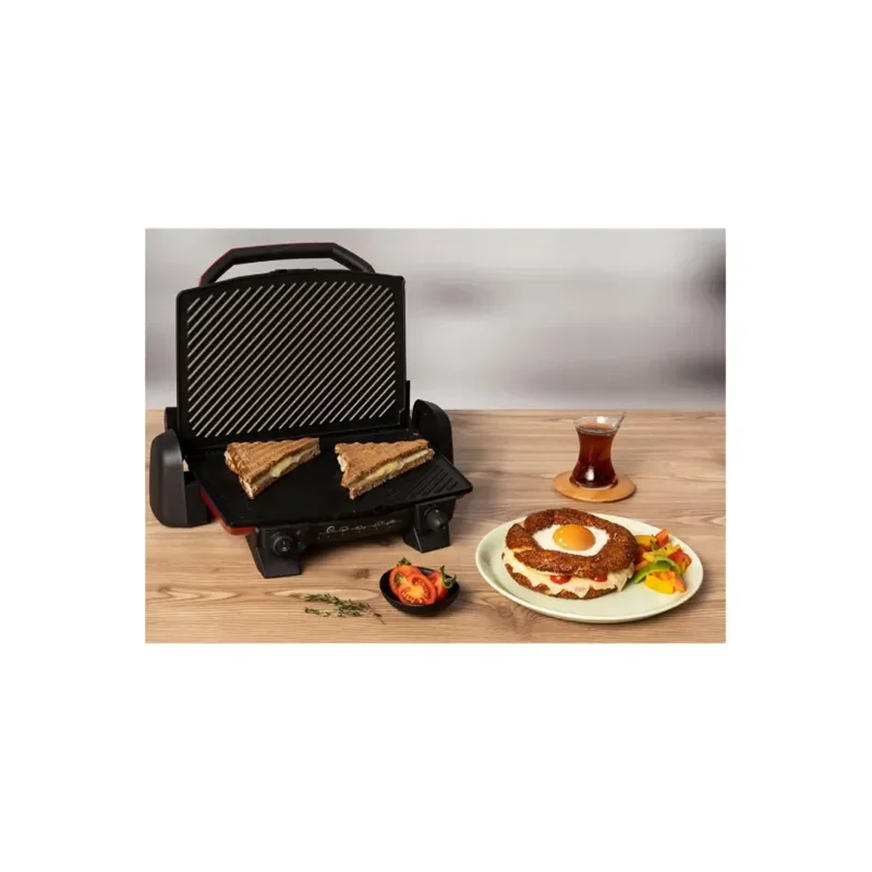 گریل و توستر برقی Toast Expert از مواد ریخته گری ساخته شده و دارای روکش نچسب می باشد. صفحات قابل استفاده دو جهته سهولت استفاده را فراهم می کنند. با صفحات قابل شستشو در ماشین ظرفشویی و مساحت سطح پخت 1400 سانتی متر مربع برای استفاده روزانه مناسب است. با کمک دکمه روشن/خاموش، سیستم نور دوگانه که دمای ایده آل پخت را نشان می دهد و عملکردهای قابل تنظیم ترموستات که دمای مناسب را برای انواع غذاها فراهم می کند، می توانید به صورت عملی غذای خوشمزه تهیه کنید. توان آن 1800 وات است. برای پخت گوشت، ماهی و مرغ مناسب است.