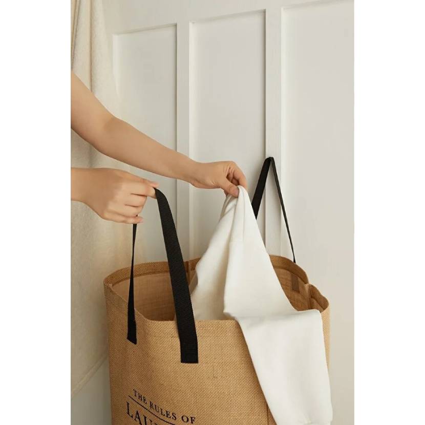 Ocean Home Textile Jüt Asılabilir Katlanır Kirli Çamaşır Dolap İçi Oyuncak Düzenleyici Saklama Çantası Sepet 40x25x55