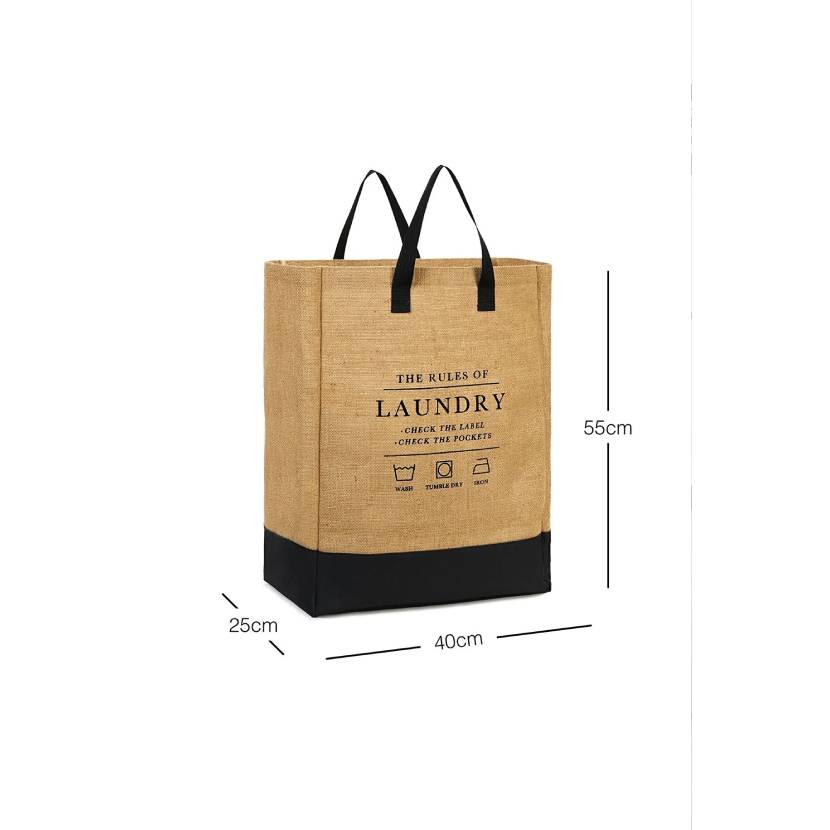 ۱ عدد کیف رختشویی کنفی با ابعاد: ۴۰x۲۵x۵۵ سانتیمتر (عرض x عمق x ارتفاع) و حجم: ۵۵ لیتر