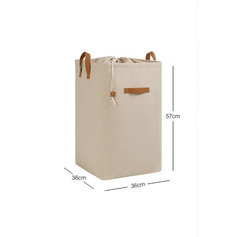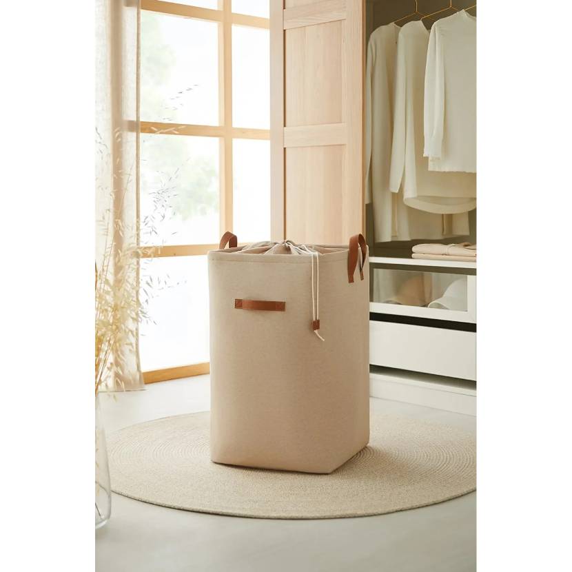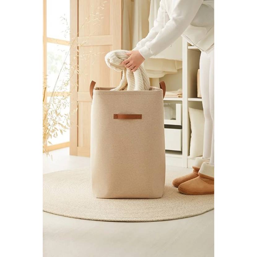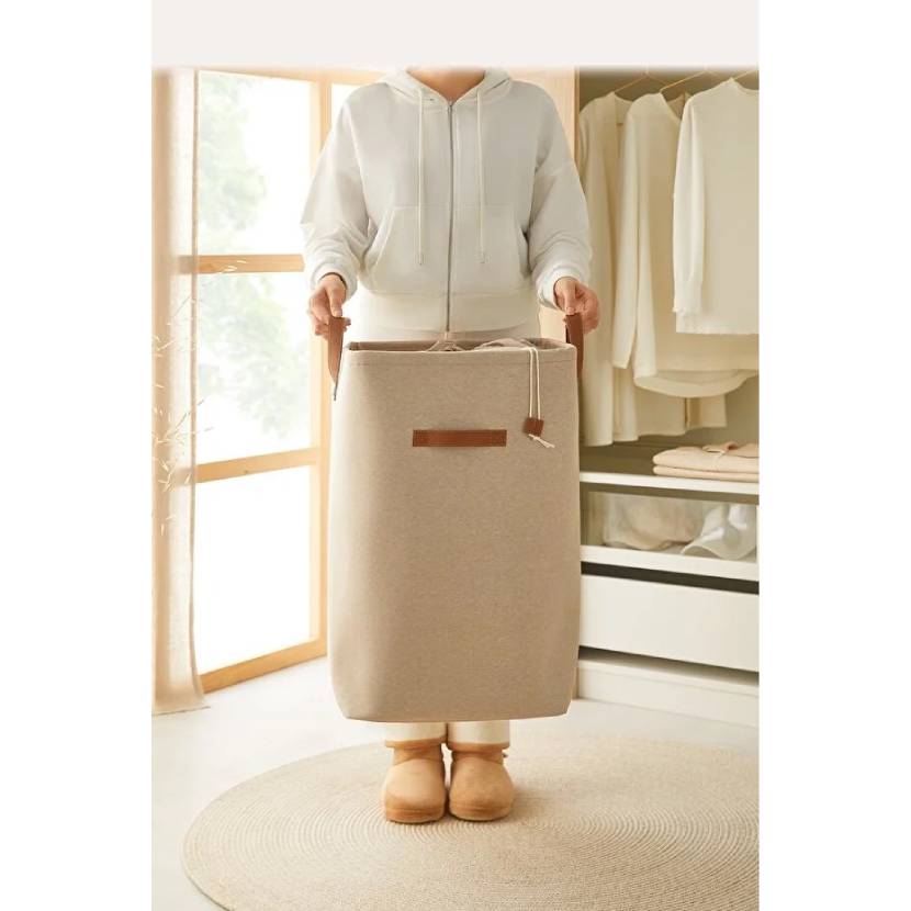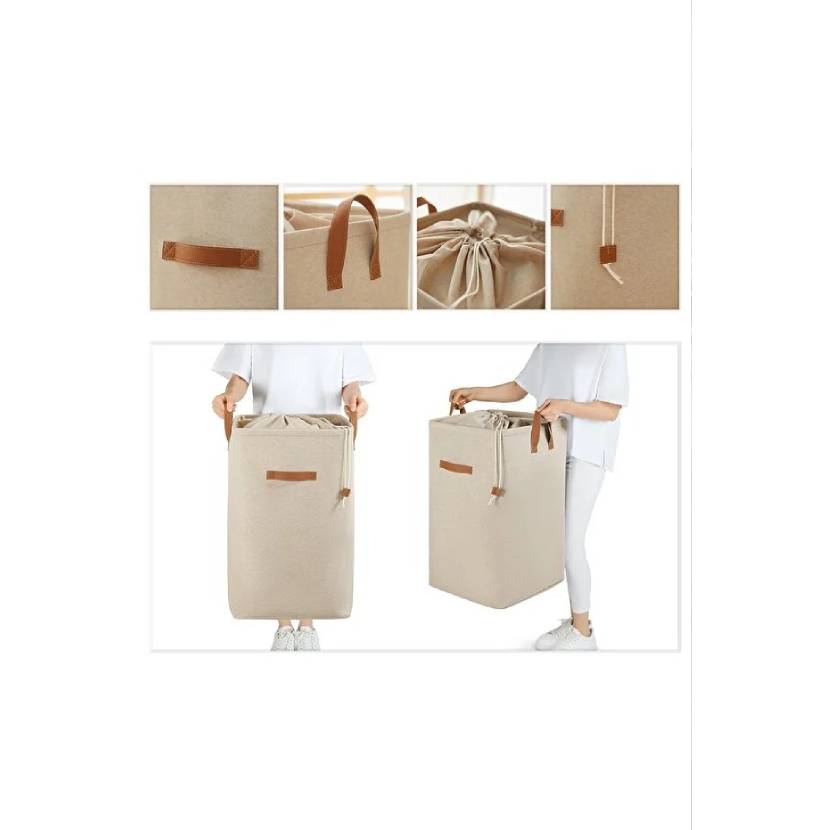 Ocean Home Textile Bej Kumaş Büzgülü Katlanır Kirli Çamaşır Dolap İçi Çocuk Oyuncak Düzenleyici Saklama Sepeti 36x36x57