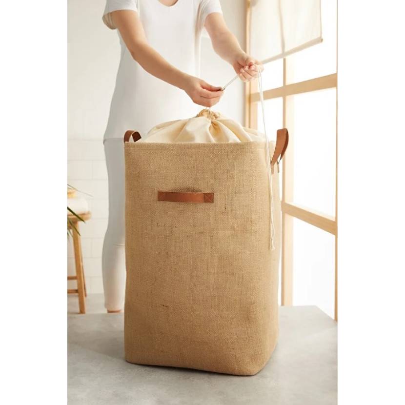 Ocean Home Textile Jüt Büzgülü Katlanır Kirli Çamaşır Dolap İçi Çocuk Odası Oyuncak Düzenleyici Saklama Sepeti 36x36x57