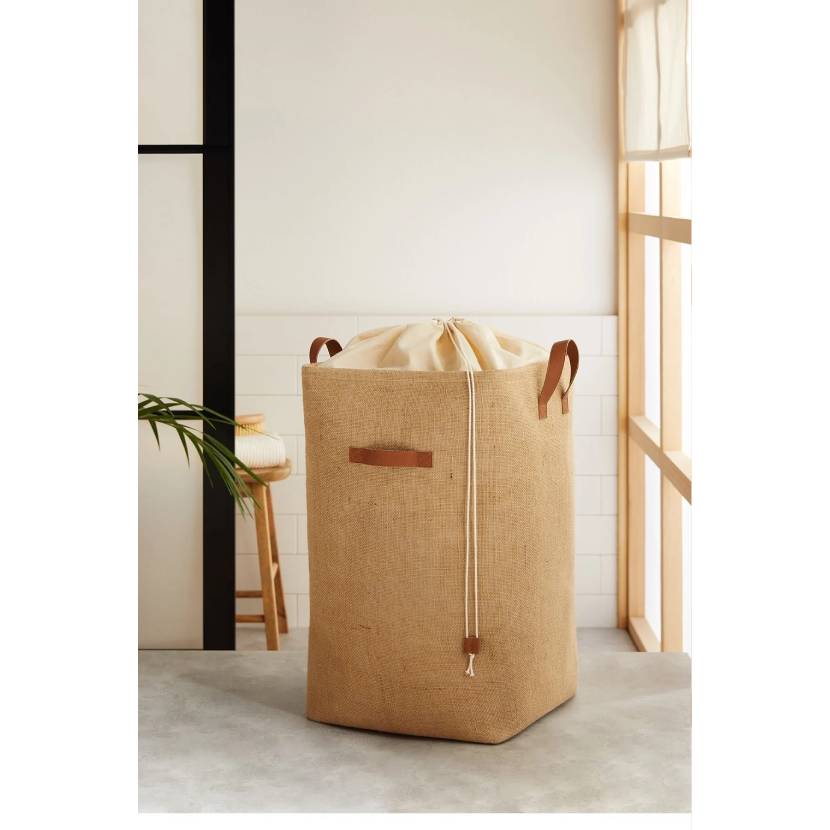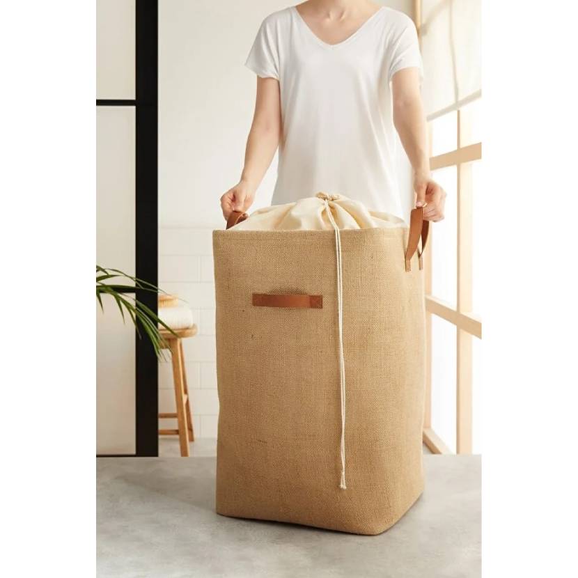 سبد رختشویی ساخته شده از پارچه کنفی با طراحی متفاوت خود برای استفاده در قسمتهای رختشویخانه و محلهای سازماندهی مناسب است.