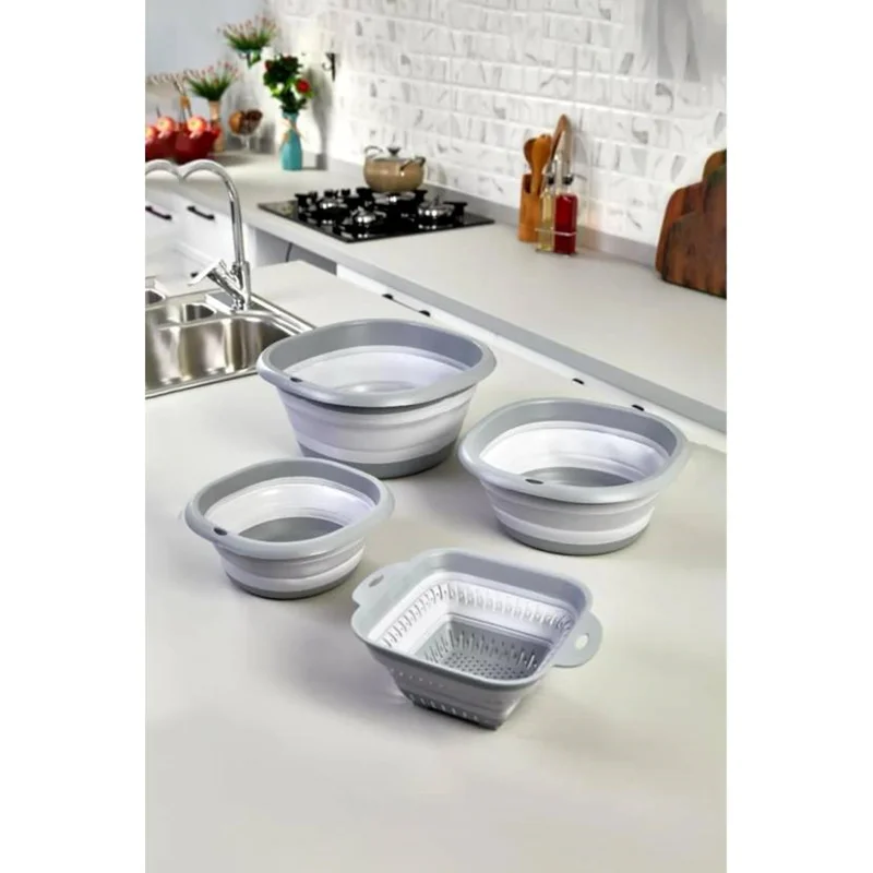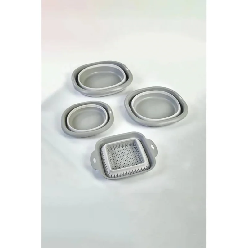 HOMENIVA Gri 4’lü Akordiyon Katlanır Badya Leğen Süzgeç Seti