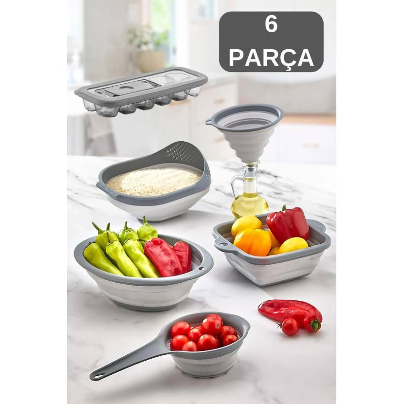 HOMENIVA Katlanır 6 Parça Mutfak Seti - 6'lı Akordiyon Mutfak Çeyiz Seti - Gri