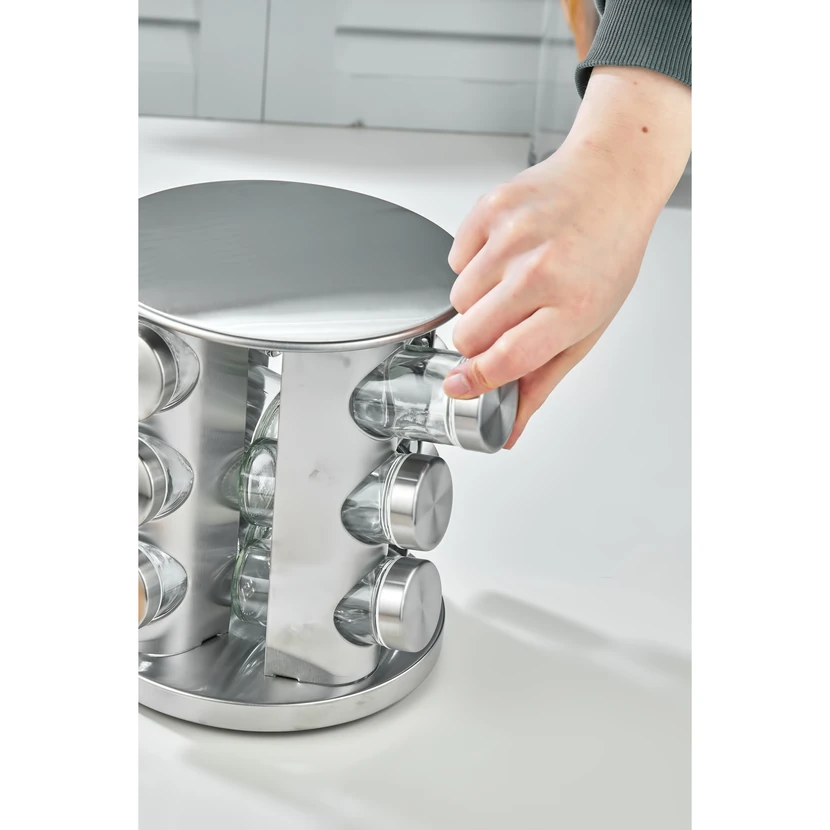- ست ادویه 12 تکه شیشهای با پایه استیل کروم و طراحی گرد چرخشی 360 درجه؛ مناسب نظمدهی و دسترسی سریع به ادویهها، مقاوم و شکیل. نکته خرید: کیفیت درب و آببندی را بررسی کنید.