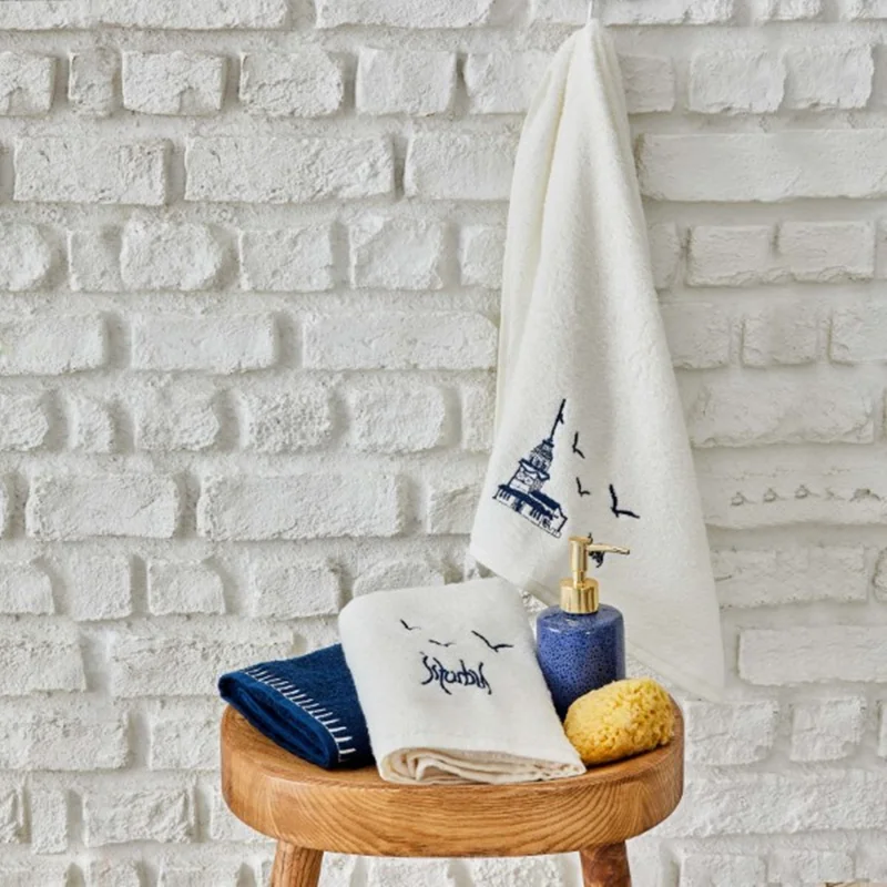 Karaca Home Kız Kulesi İndigo %100 Pamuk 3 Parça Nakışlı Havlu Set 30x50 cm