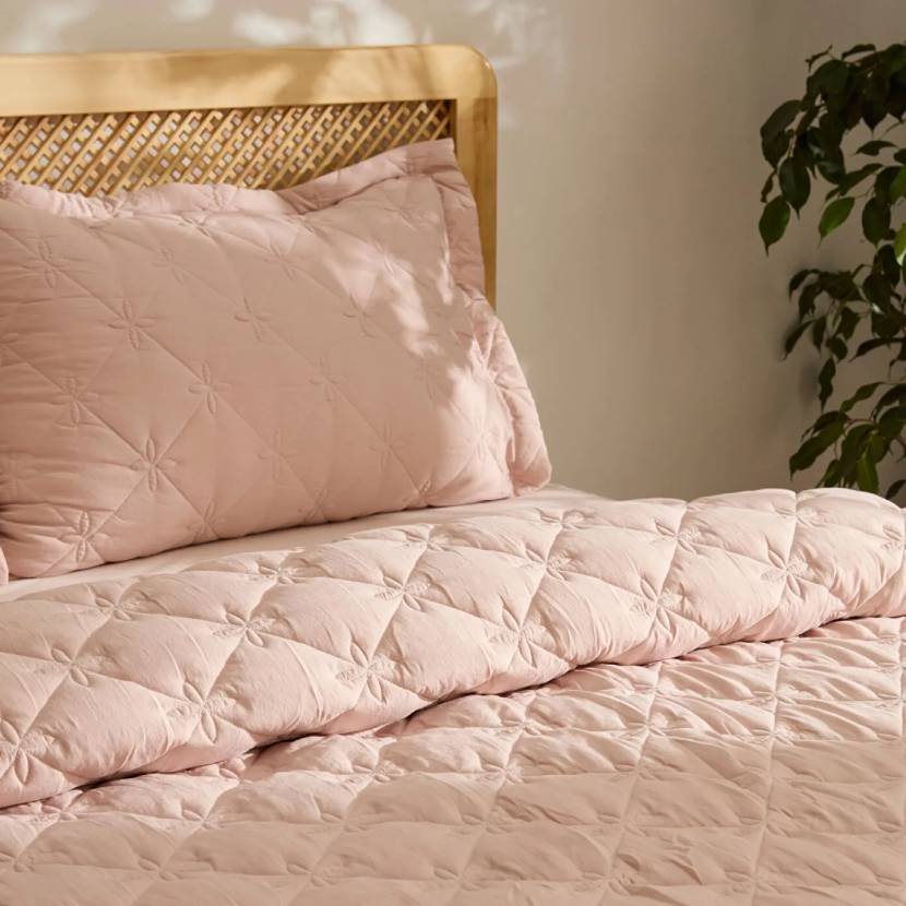 Kaşmir Home Lilly Çiçekli Tek Kişilik Yatak Örtüsü Takımı Pudra