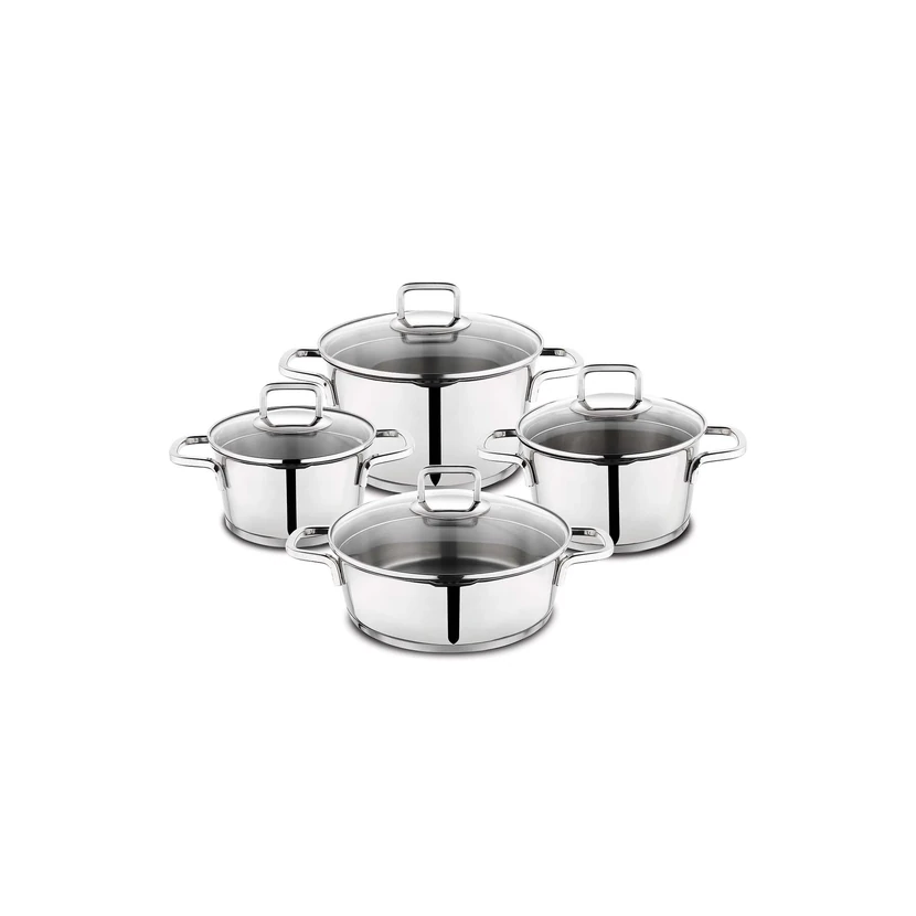 - ست قابلمه استیل شافر 8 پارچه اینوکس با ساختار تمام استیل باکیفیت، مناسب پختوپز روزمره و مهمانیهاست؛ توزیع یکنواخت حرارت، مقاومت بالا و نگهداری آسان از مزایا هستند. پیش از خرید، تعداد و سایز قطعات را متناسب با نیازتان بررسی کنید.