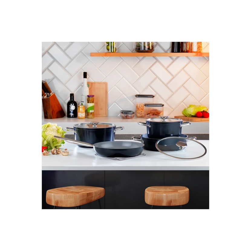 - ست قابلمه سرامیکی شفر گراویتا با طراحی مشکی و پوشش سرامیکی باکیفیت، پخت یکنواخت و ظاهر مدرن به آشپزخانه شما اضافه میکند و مناسب تهیه انواع خوراکیهاست.