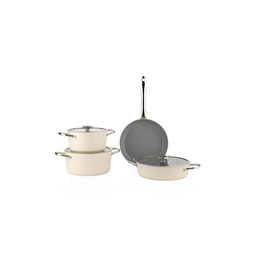 - ست قابلمه سرامیکی شافر گراویتا 7 پارچه کرم؛ بدنه و داخل سرامیکی با پوشش بدون BPA برای پخت یکنواخت و سالم. سبک، شستوشوی آسان و طراحی شیک. نکته خرید: سایز ظرفها را با نیازتان مطابقت دهید.