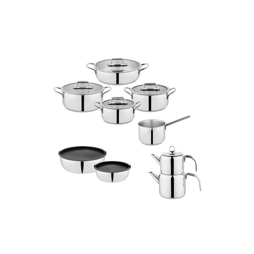 - جنس داخلی و خارجی استیل، قابلیت شستوشو در ماشین ظرفشویی و قطعات با حجمهای متنوع (مثلاً 1.5 لیتر) کاربری آسان را تضمین میکند؛ هنگام خرید به تعداد قطعات و سازگاری با اجاق دقت کنید.