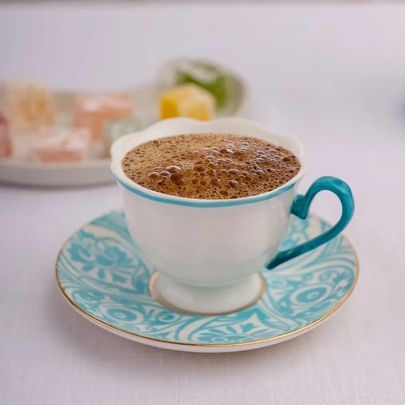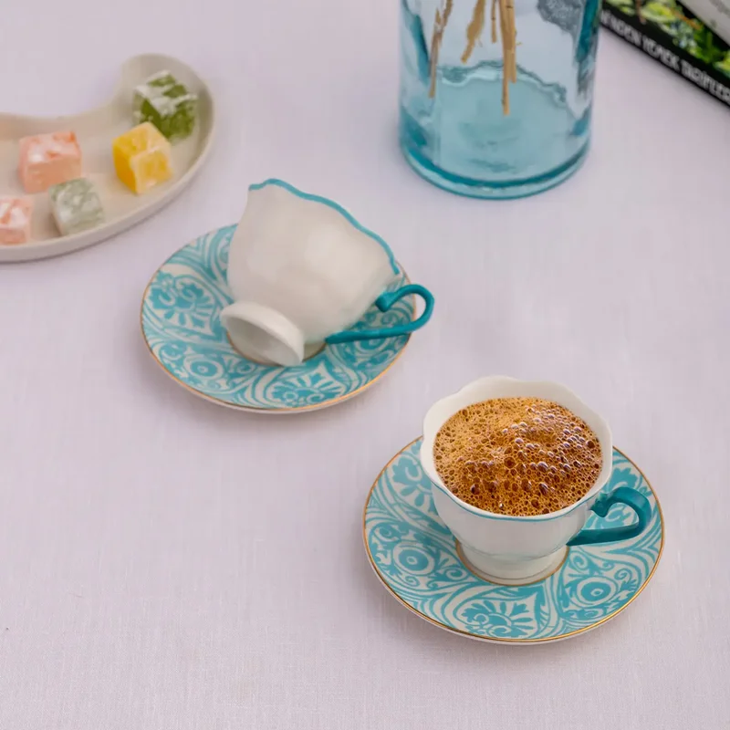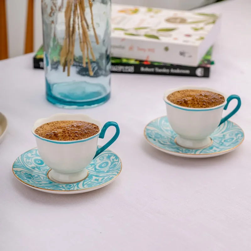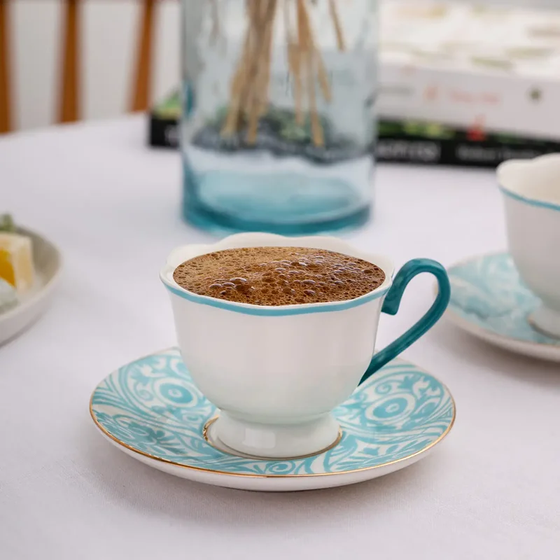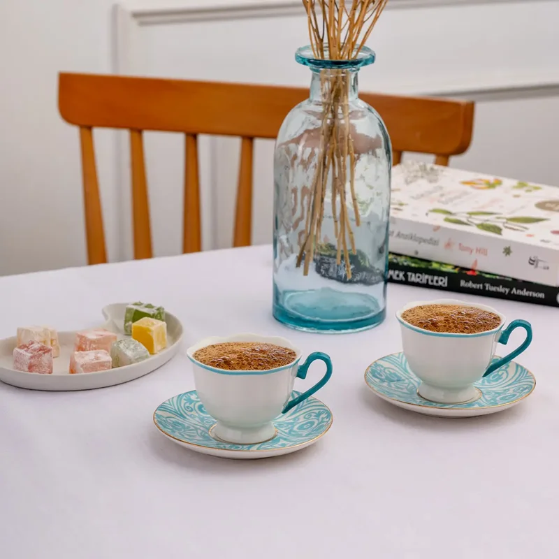 Emsan Aurora 2 Kişilik New Bone Kahve Fincan Takımı 90 ml Turkuaz