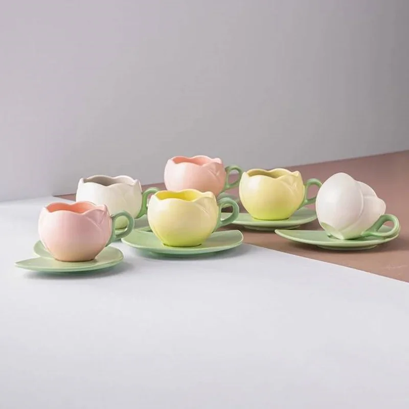 İstanbul Porselen Lale 6'lı Kahve Fincan Takımı 90 ml Multicolor